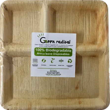 Name:3 compartment Square Code: 3CPSQ Product detail: 100% Biodegradable Areca leaf plates Size: 10" Pack size:10 MRP: 124/- Material: Areca Leaf Pacakging: 50 micron shrink warp Features: