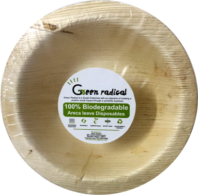 Name: 5'' round bowl Code: 5RB Product detail: 100% Biodegradable Areca leaf plates Size: 5" Pack size: 20 MRP: 79/- Material: Areca Leaf Pacakging: 50 micron shrink warp Features: